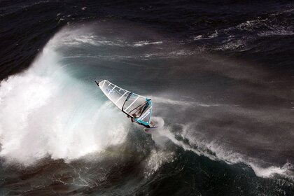 Barca sull onda bolshots durante la tempesta