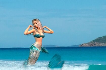 La sirena nel mare salta fuori dall onda