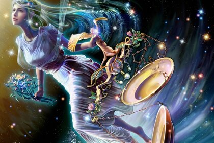 Illustrazione raffigurante una ragazza su uno sfondo di cielo stellato