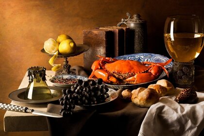 Natura morta con cibo e bevande