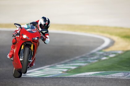 Moto in curva motociclista in gara