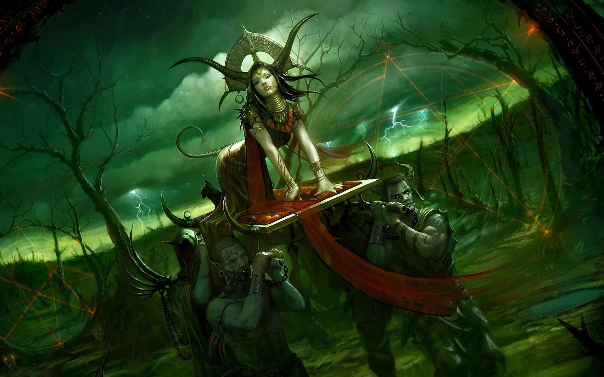 Personaggi di fantasia su sfondo verde - sfondo del desktop