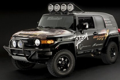 Potente Toyota nera su sfondo nero