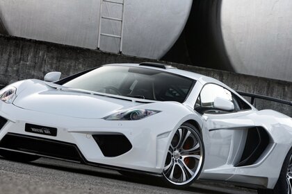Moderna auto bianca su sfondo grigio