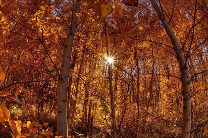 Il sole si riversò in tutta la foresta autunnale