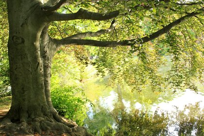 Albero inclinato su un fiume calmo