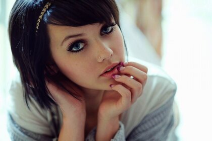 Ritratto di una bruna dagli occhi azzurri con piercing